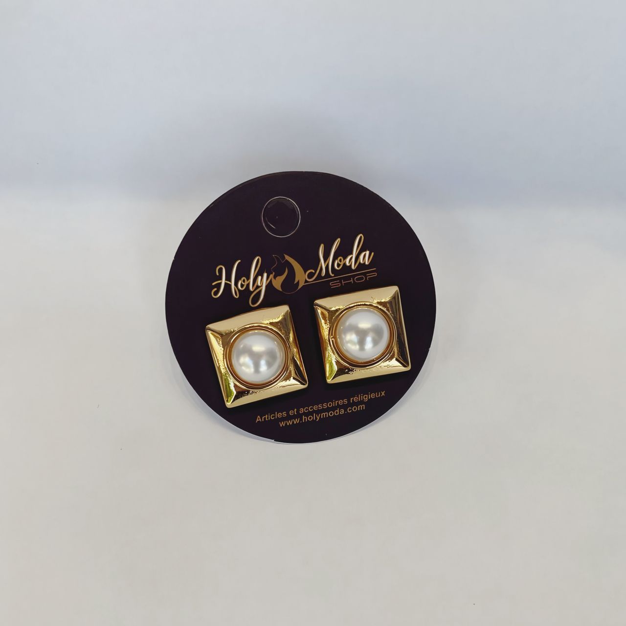 BOUCLE BAPTEME 4 EN FORME CARRE AVEC UNE PERLE BLANCHE .