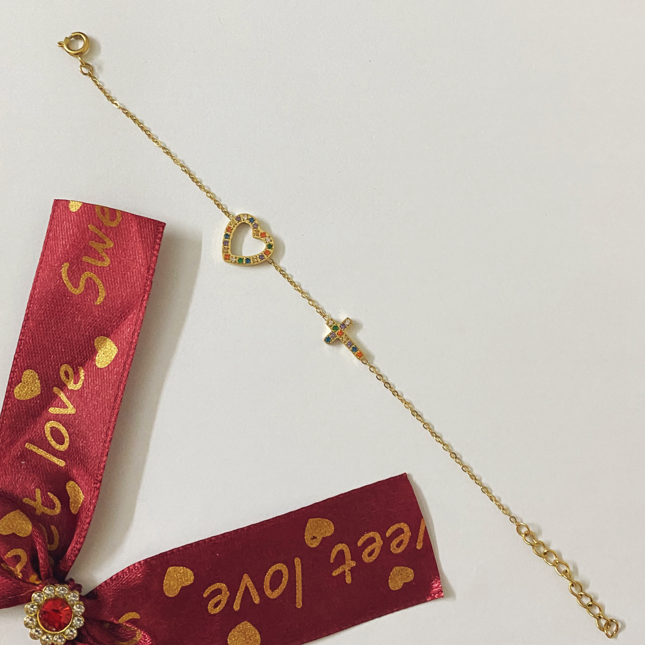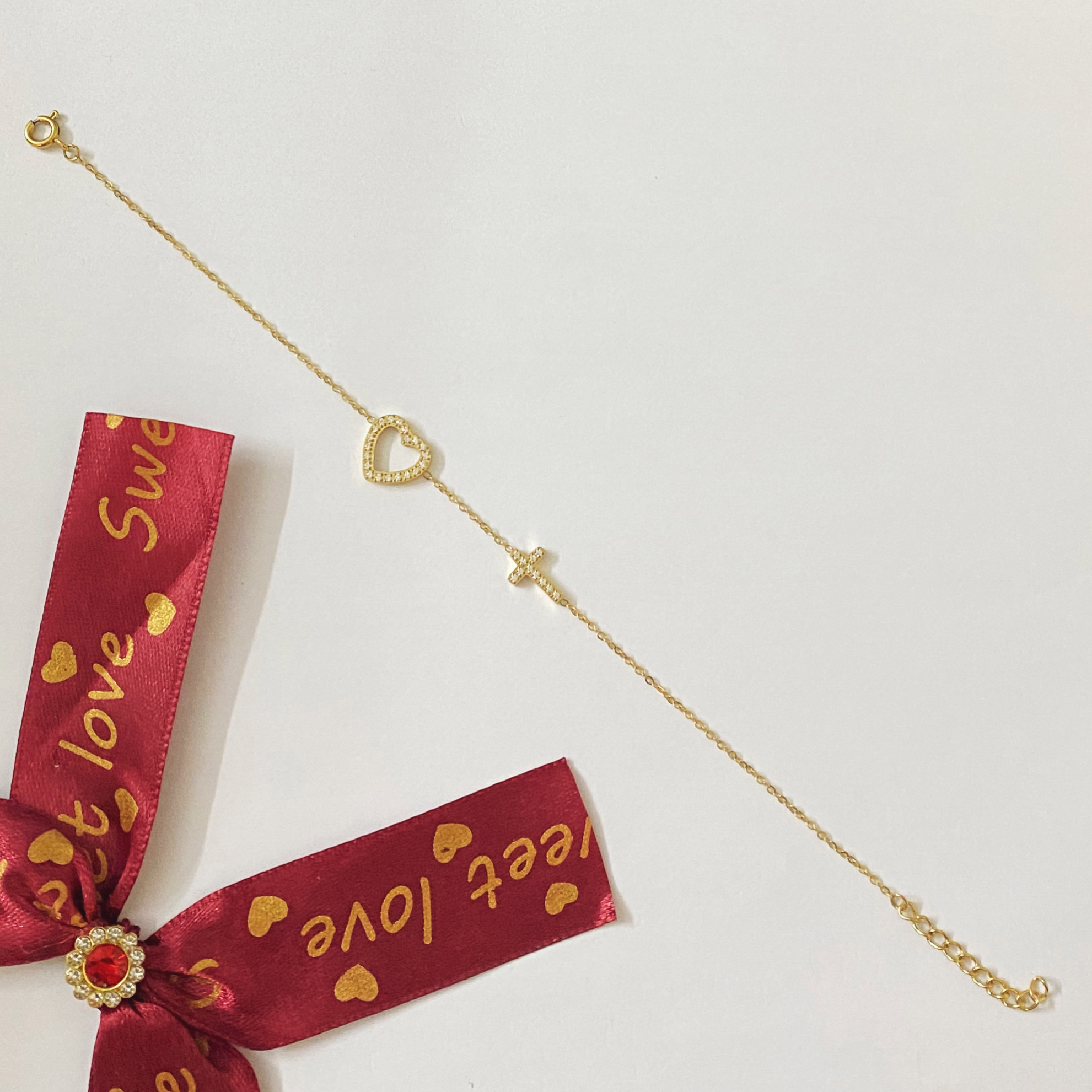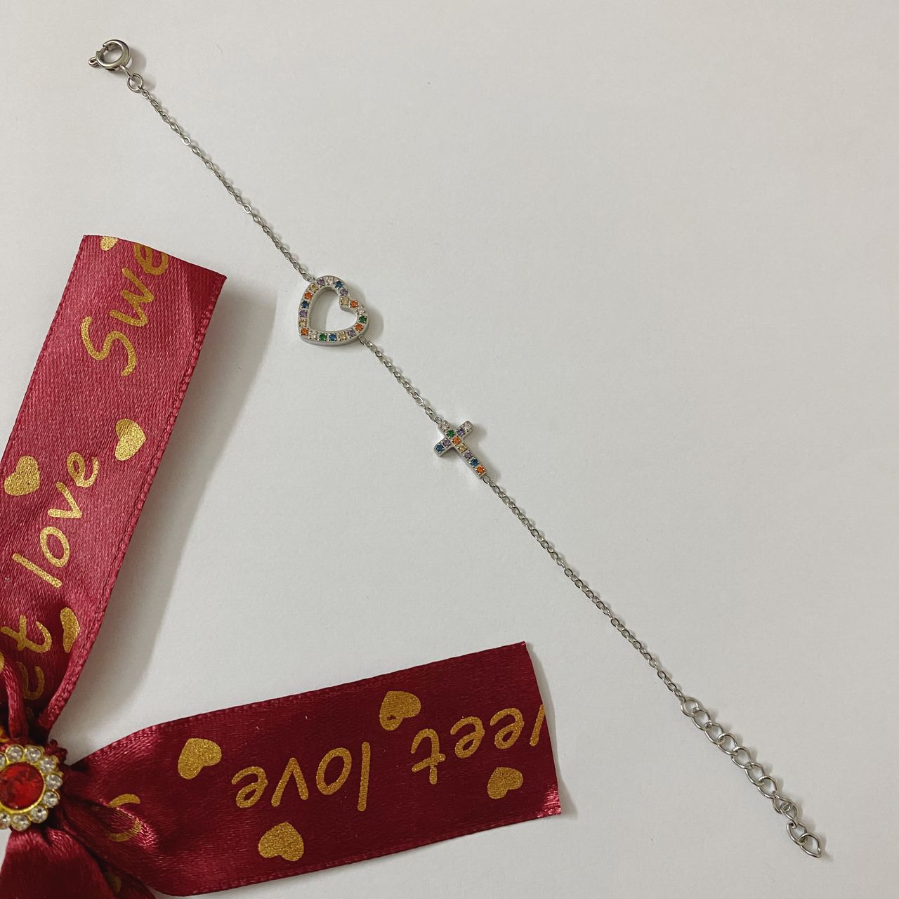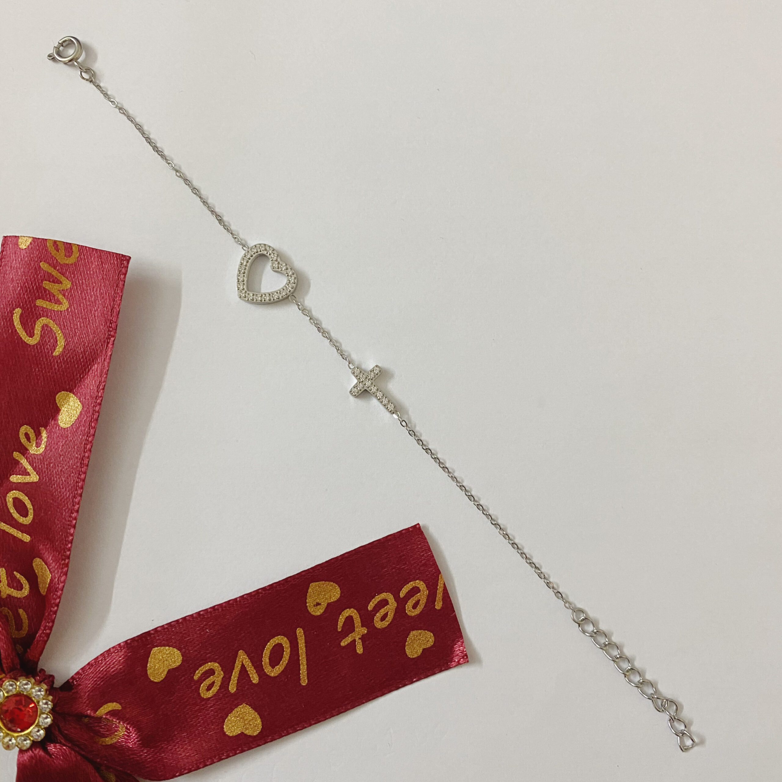 Bracelet croix, cœur avec pierre