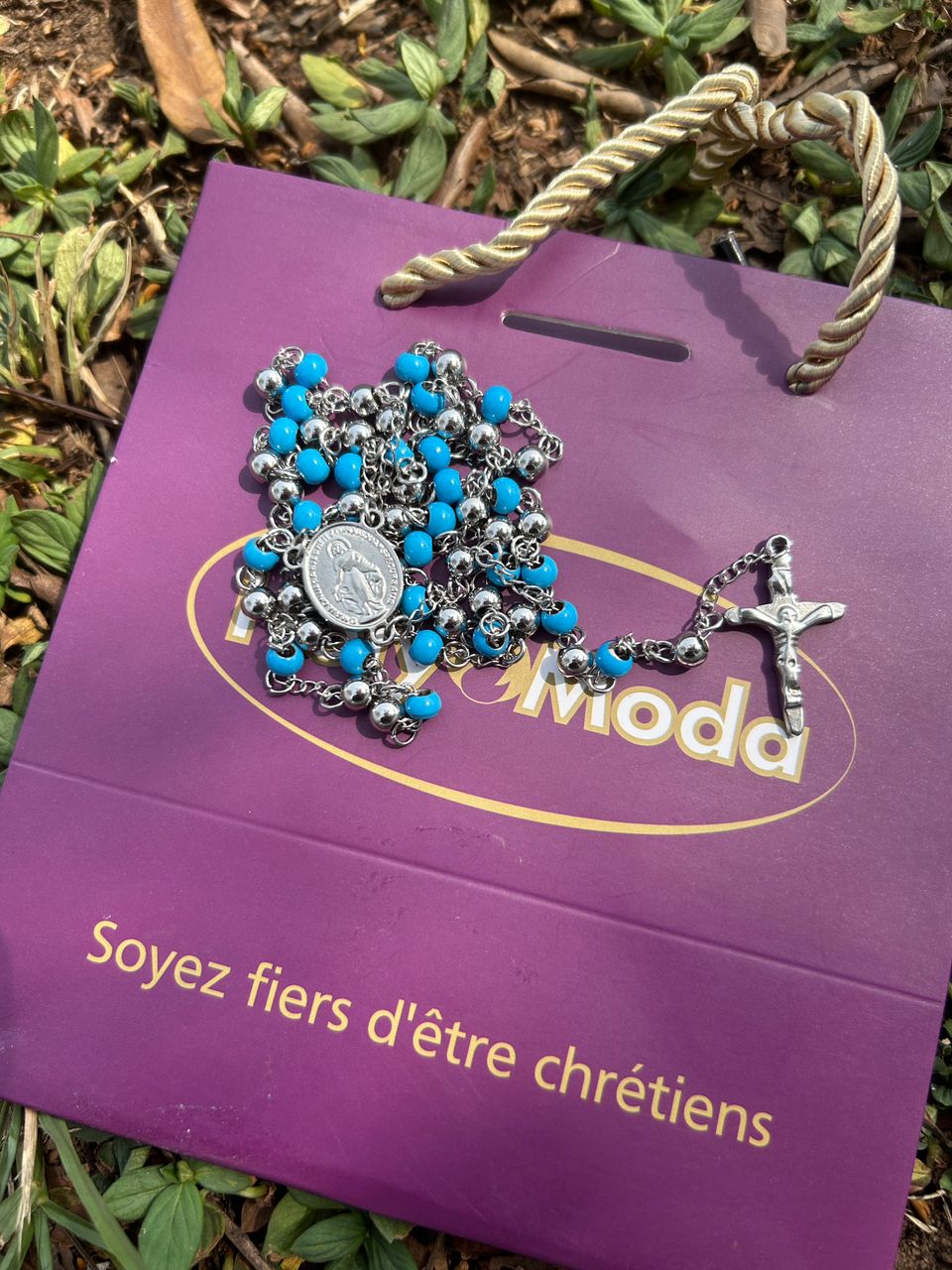 CHAINE CROIX AVEC PIERRE ACIER INOXYDABLE