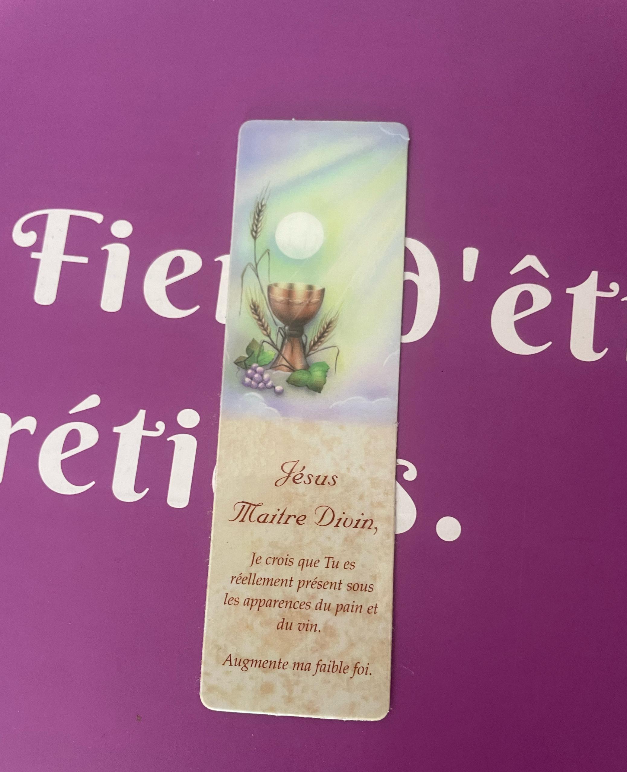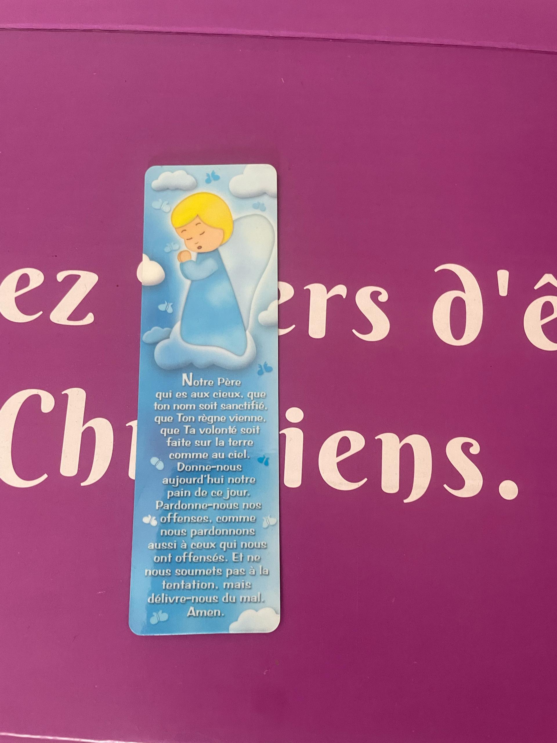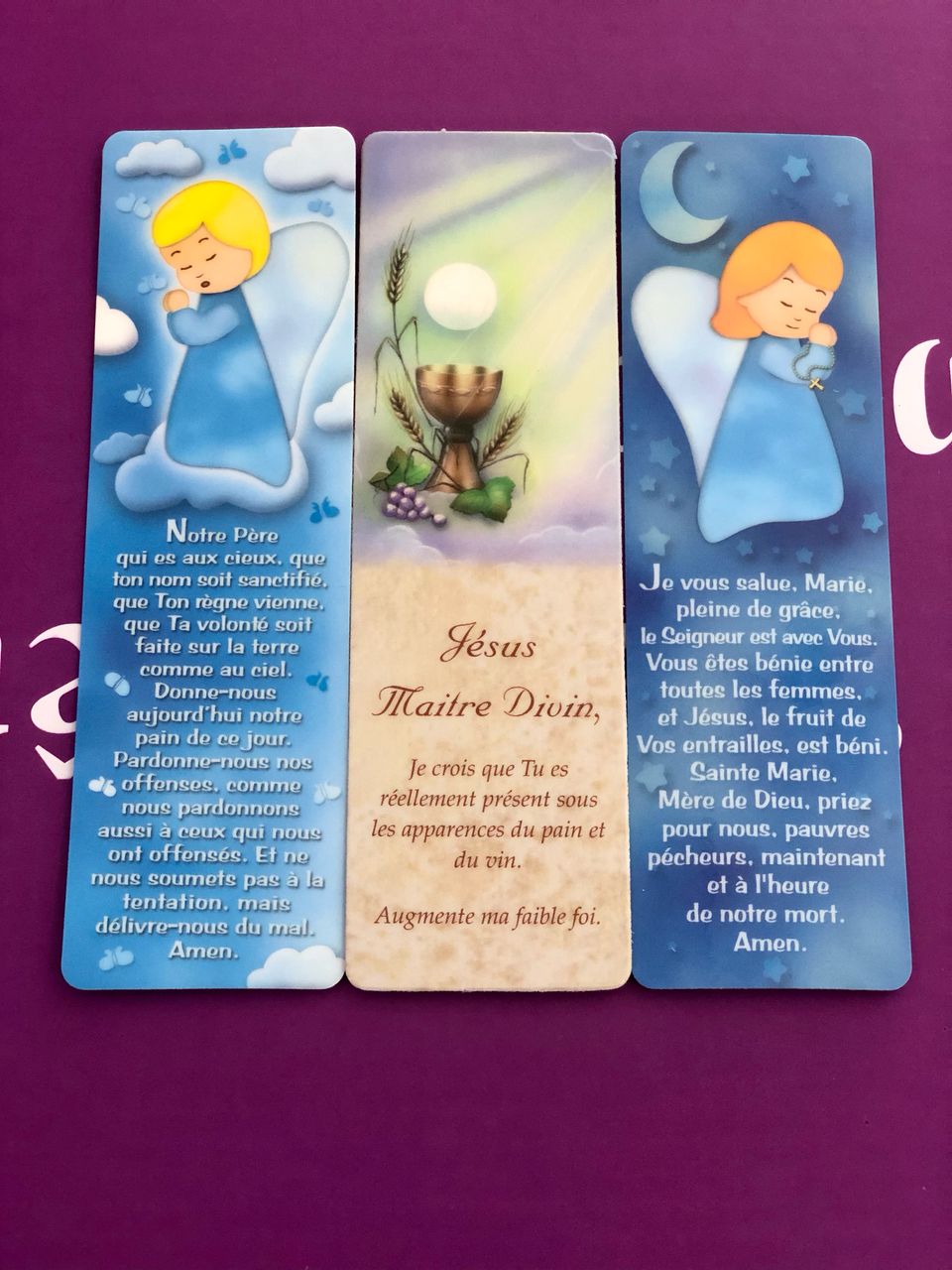 AVEC CES MARQUES PAGES VOUS AVEZ UNE FACILITE DE PRIER .A OFFRIR OU S’OFFRIR , ideale pour la constitution de vos box cadeaux . vous retrouverais le NOTRE PERE ; JESUS MAITRE DIVIN et le JE VOUS SALUT MARIE.