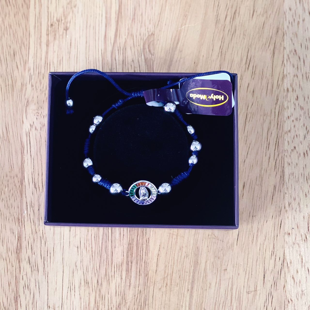 SHAMBALA MARIE 02 BLEU AVEC PERLE ET MEDAILLE ARGENTE . ACIER INOXYDABLE VIERGE GUADELOUPE